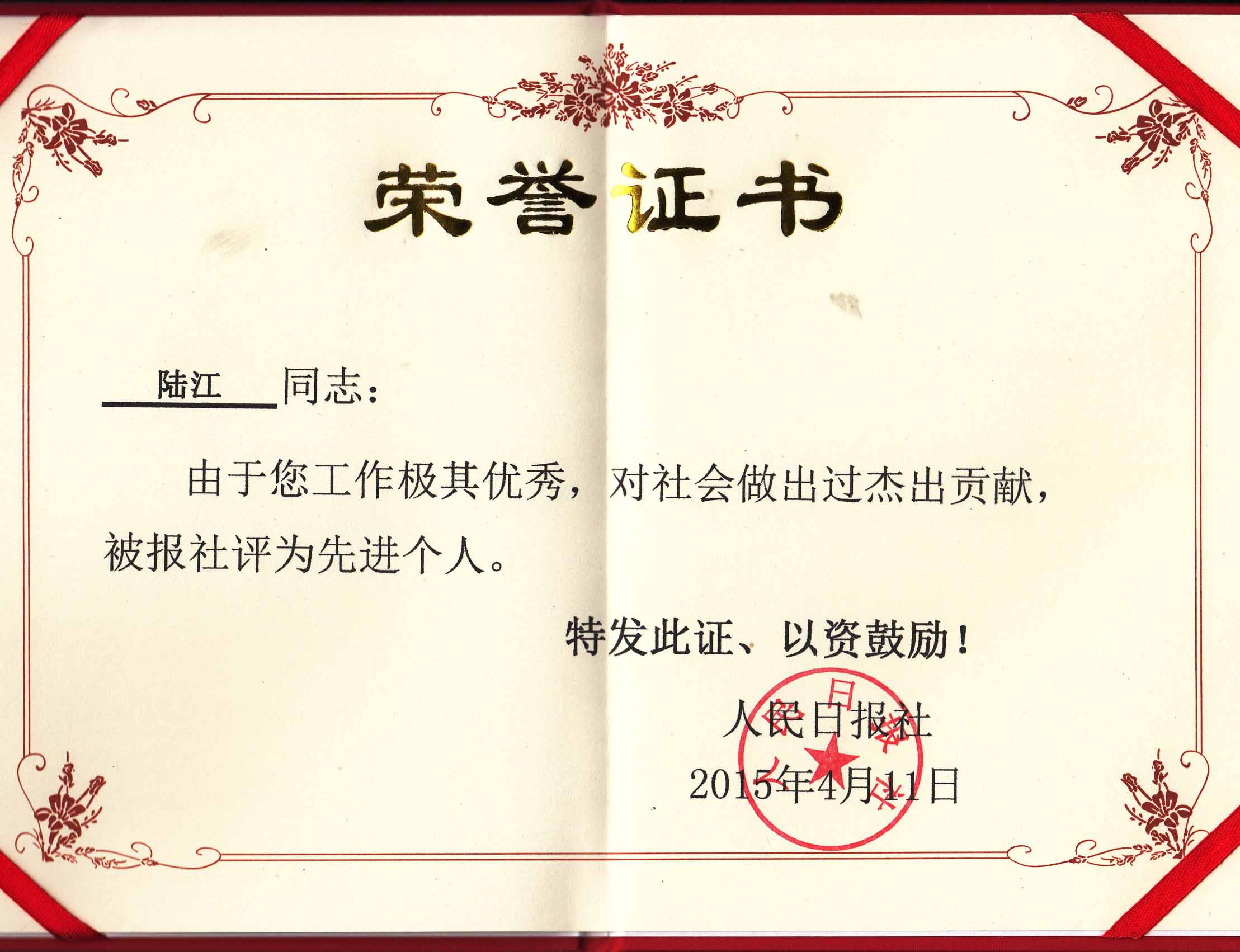 陸江榮獲引領行業發展杰出貢獻人物證書 --------卓康公司榮獲全國質量、服務、信譽AAA級品牌證書